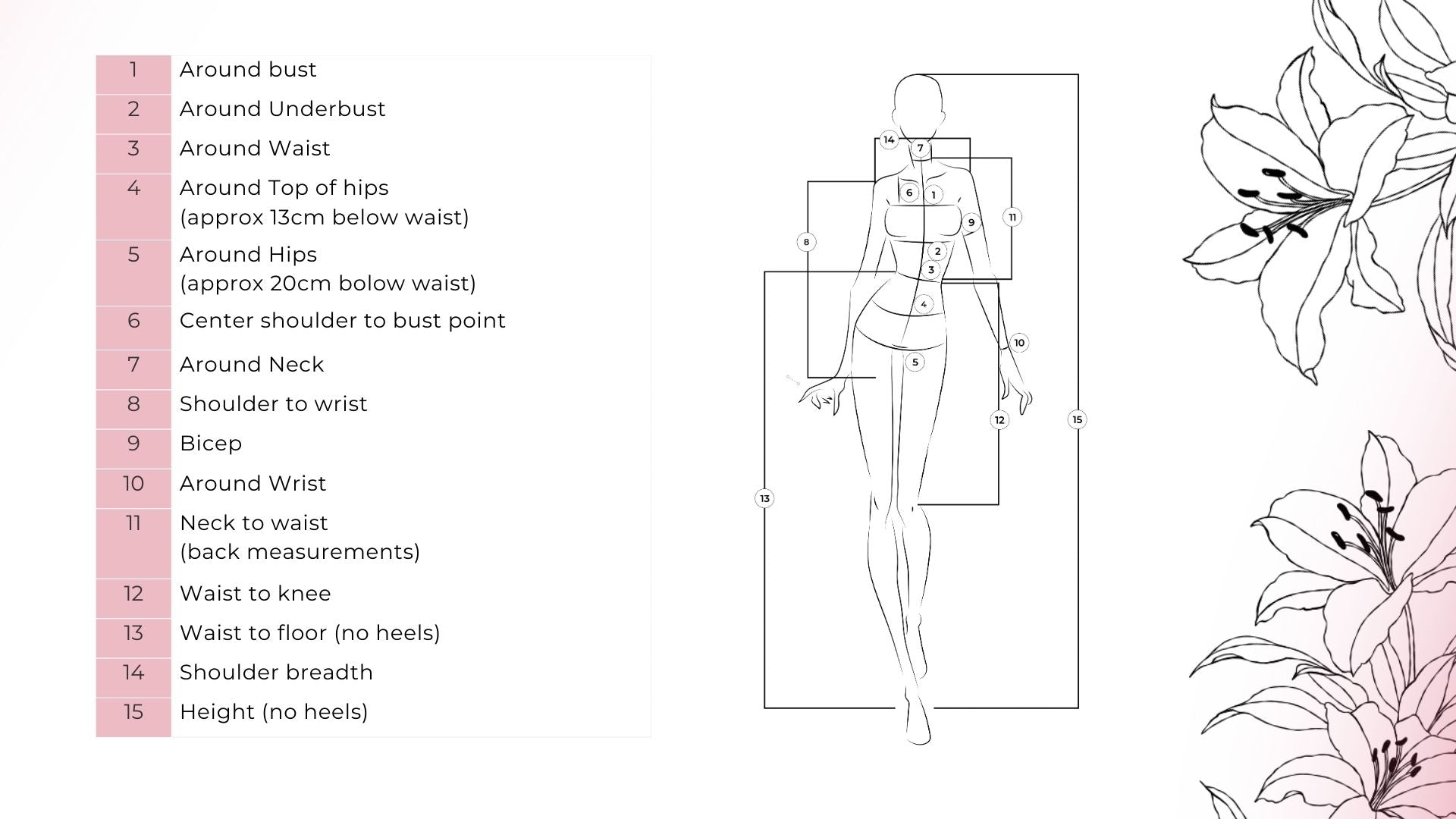 Your gown should be as unique as your story. Our custom service is the heart of 39 Dresses, born from a lifetime dream of designing pieces that celebrate only you. Rihette personally conceptualises, designs, and produces every creation with simplicity and detail in harmony. This option ensures a perfect fit, as there are no size limits when ordering a bespoke piece. We invite you to begin the process by providing your detailed measurements for a gown truly made for you.